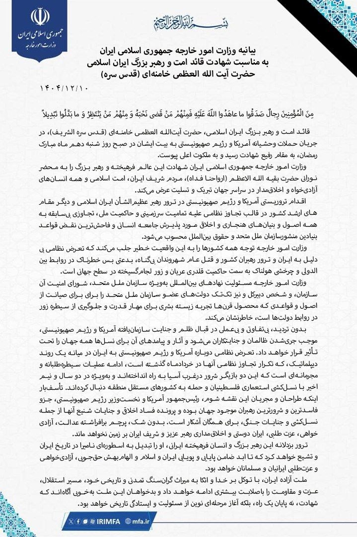 Заявление Министерства иностранных дел Исламской Республики Иран